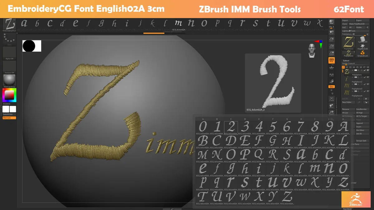 ZBrush는 3D 아티스트들에게 최고의 선택지로, 강력한 조각 기능을 제공하며, 커스텀 IMM(Insert Multi Mesh) 브러시를 통해 기능을 확장할 수 있습니다. 제가 개발한 ZBrush IMM 브러시—EmbroideryCG_Font_English02A_3cm를 무료로 제공하게 되어 기쁩니다. 이 도구는 실제 자수 텍스트 효과를 생성하기 위해 특별히 설계되었습니다.