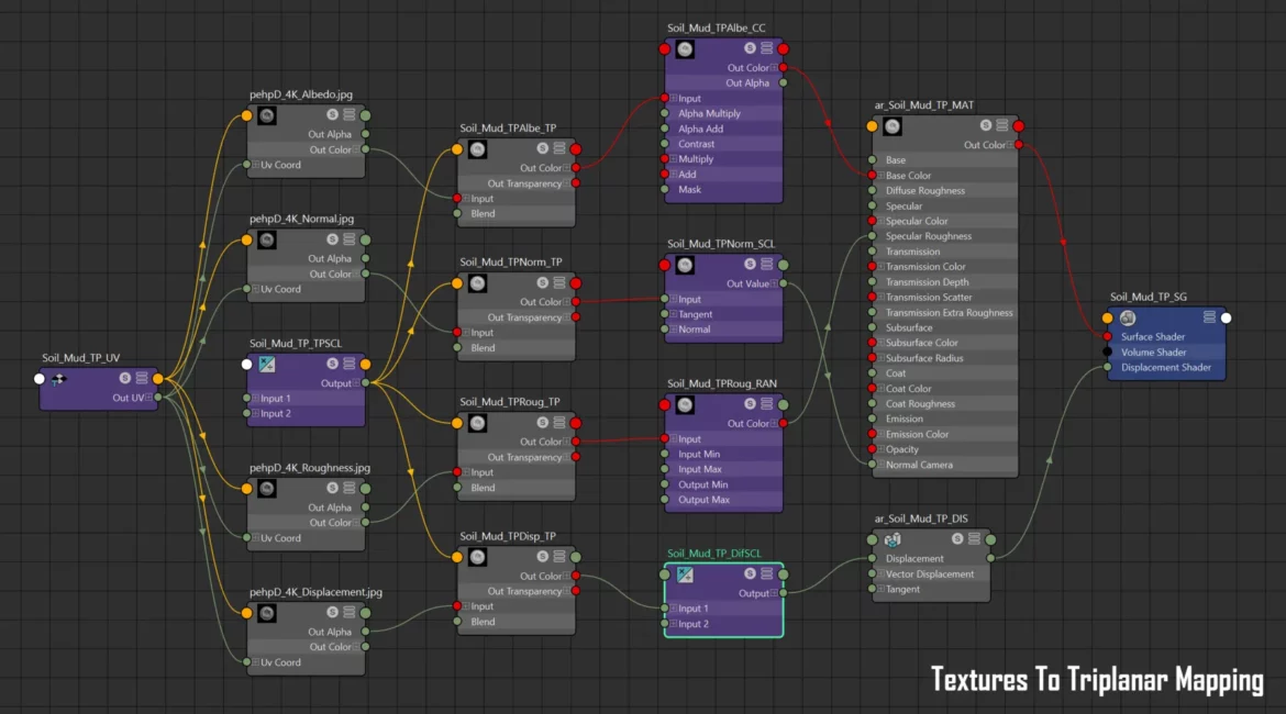 PBRtoMaya is not just a PBR material tool; it also makes importing Megascans assets for set dressing in scenes very convenient and quick. I developed it because I frequently handled these tasks. Additionally, it’s highly useful for connecting materials with TriPlanar projection mapping, which is an essential and convenient feature when working with large terrain materials.
