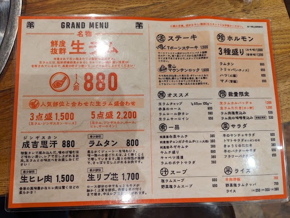 說到價格,「肉汁屋」的定位相當親民。像「生羊肉三種拼盤」這樣的豪華組合,只需要3000日元左右,而單點的T字骨羊排等菜品則維持在2000日元以內。這樣的高品質羊肉,能以如此實惠的價格品嚐到,難怪這裡成了新橋站附近的熱門餐廳之一。